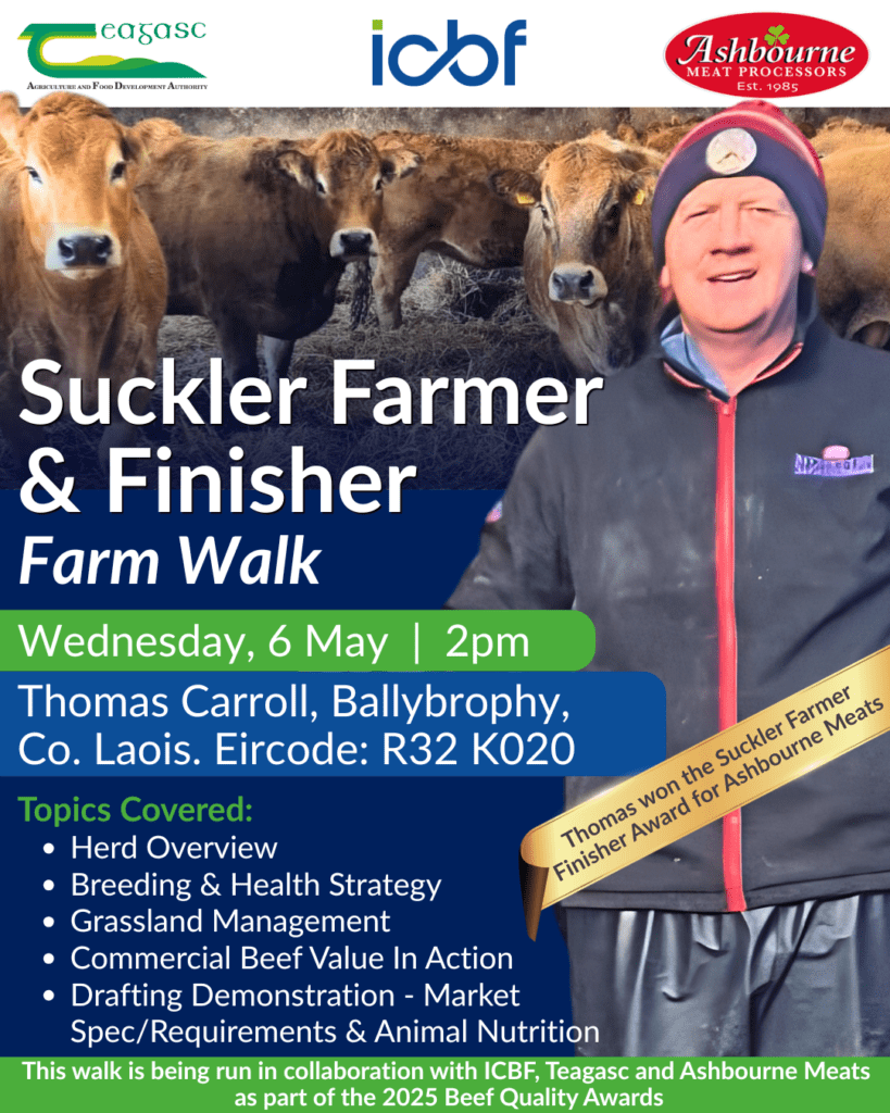 Join us on Wednesday, 6th May from 2pm – 4pm for a Beef Quality Awards 2025 Farm Walk on the farm of Thomas Carroll, Ballybrophy, Co. Laois, R32 K020.