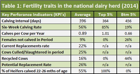 Similar trends are apparent for other important fertility parameters such as the six-week calving rate, which has seen a 2% decrease to 56% (See Table 1 below). Given the extremely poor weather conditions in the Spring of 2013, these figures are somewhat unsurprising. The National Statistics are based on data from 13,793 herds and 1.11 million cows that were on these farms on 30th June 2014.