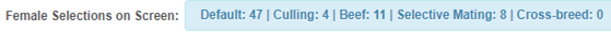 - Females can be selected for culling, beef mating, crossbred mating and selective mating using the selection tick boxes.