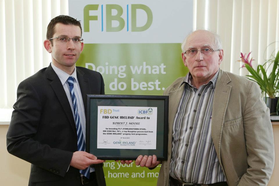 Robert J.Moore recieves an FBD Gene Ireland award for breeding FLT