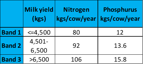 The nitrates band screen allows dairy farmers to determine which milk kgs/cow band their herd falls into for the purpose of the new nitrates requirements .