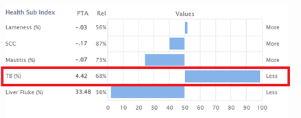 Genetic resistance to TB is an increasingly important consideration. Selecting bulls (and cows) with lower TB PTA values can help reduce your herd’s overall susceptibility to the disease.